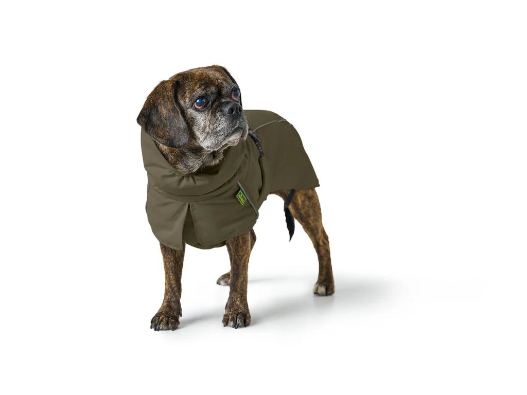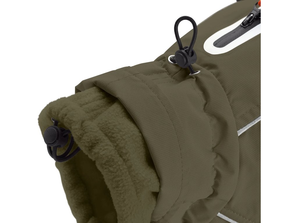 Flísová podšívka tvoří zateplenou vrstvu, aby se váš chlupatý přítel cítil i v podzimních dnech mimořádně pohodlně. Vysoký límec u krku a zakryté břicho chrání před vlhkostí a průvanem.